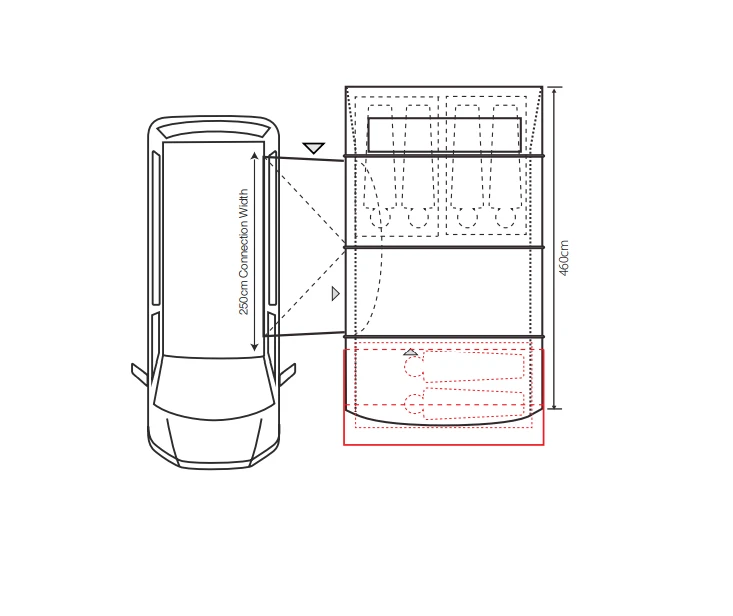 The Cayman Curl XLE fits vehicles with a rail height of 180 – 210cm and comes with inner tension straps and a cowl bungee for an adjustable vehicle fit, as all vehicles tend to be differing heights. It also features twin piping (4mm and 6mm) on the cowl connection rail so it can attach to any rail or wind-out awning on the market. It is perfect for low camper vans, such as VW Transporters, Mazda Bondo and Ford Torneo’s.