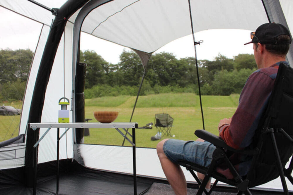 The Outdoor Revolution Movelite T2R Midline Awning is ideal for vans and motorhomes between a height of 220 – 255cm, to increase the external living space, storage space and sleeping space of the van. Redesigned for 2022, with a slightly shorter cowl, for a more compact design and pack size, and a gothic arch roof shape, which will taper the water away faster and more efficiently. The front door opens as a full door for a large ventilation space, with a mesh door to the left side of the door, which is Phoenix mesh. Furthermore, the side door has a fibreglass pole, to create a rain-safe entry point, to stop rain collecting inside the awning on a rainy day.