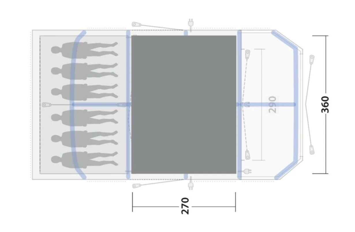 Outwell’s flat woven carpet is comfortable, warm and insulating, with a PVC backed finish to help prevent condensation rising and cold air from the ground affecting the internal temperature of the Forestville 6SA Tent.