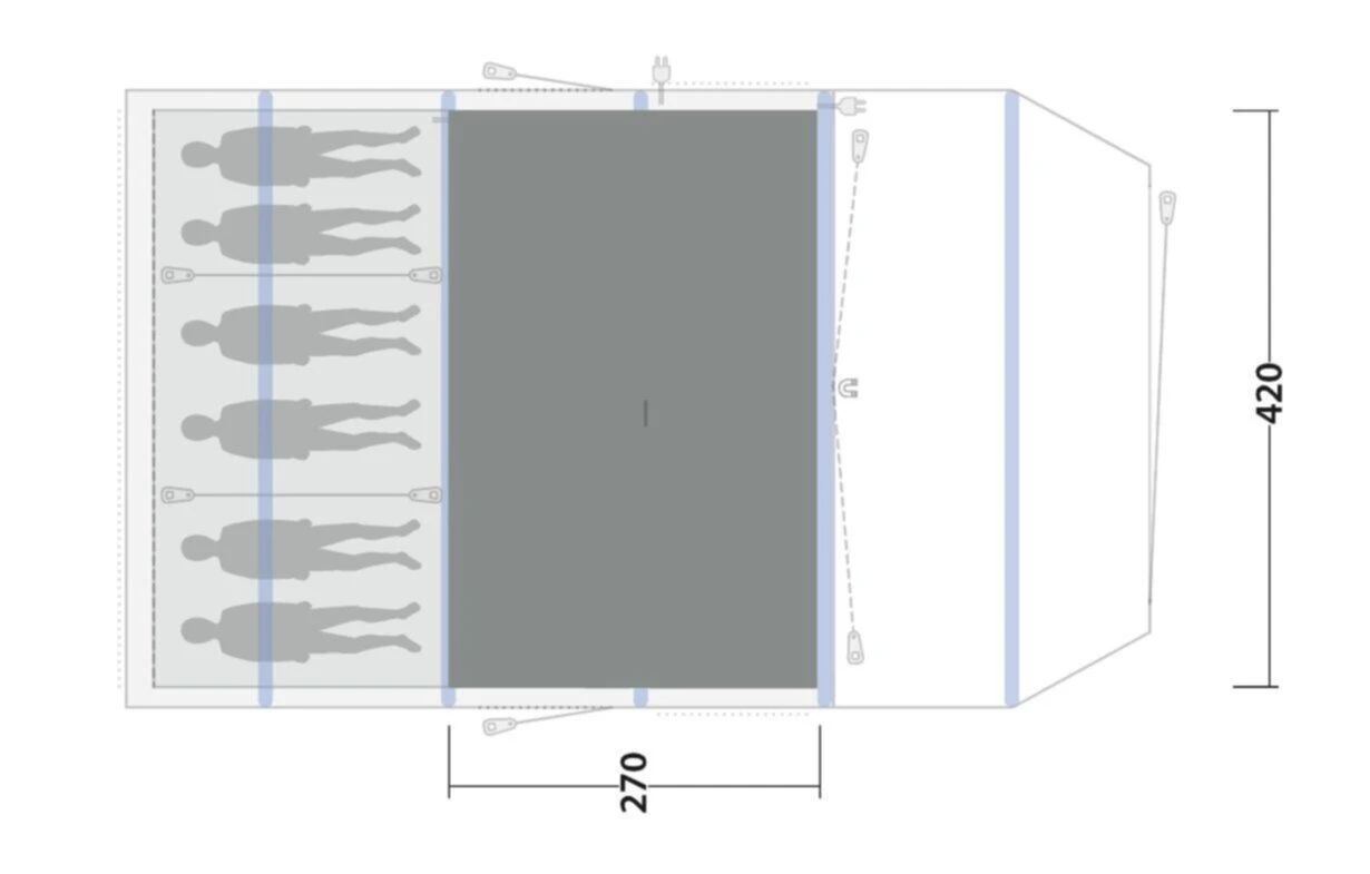 - Wall to Wall Carpet – fits the entire living space, and covers the sewn-in groundsheet.